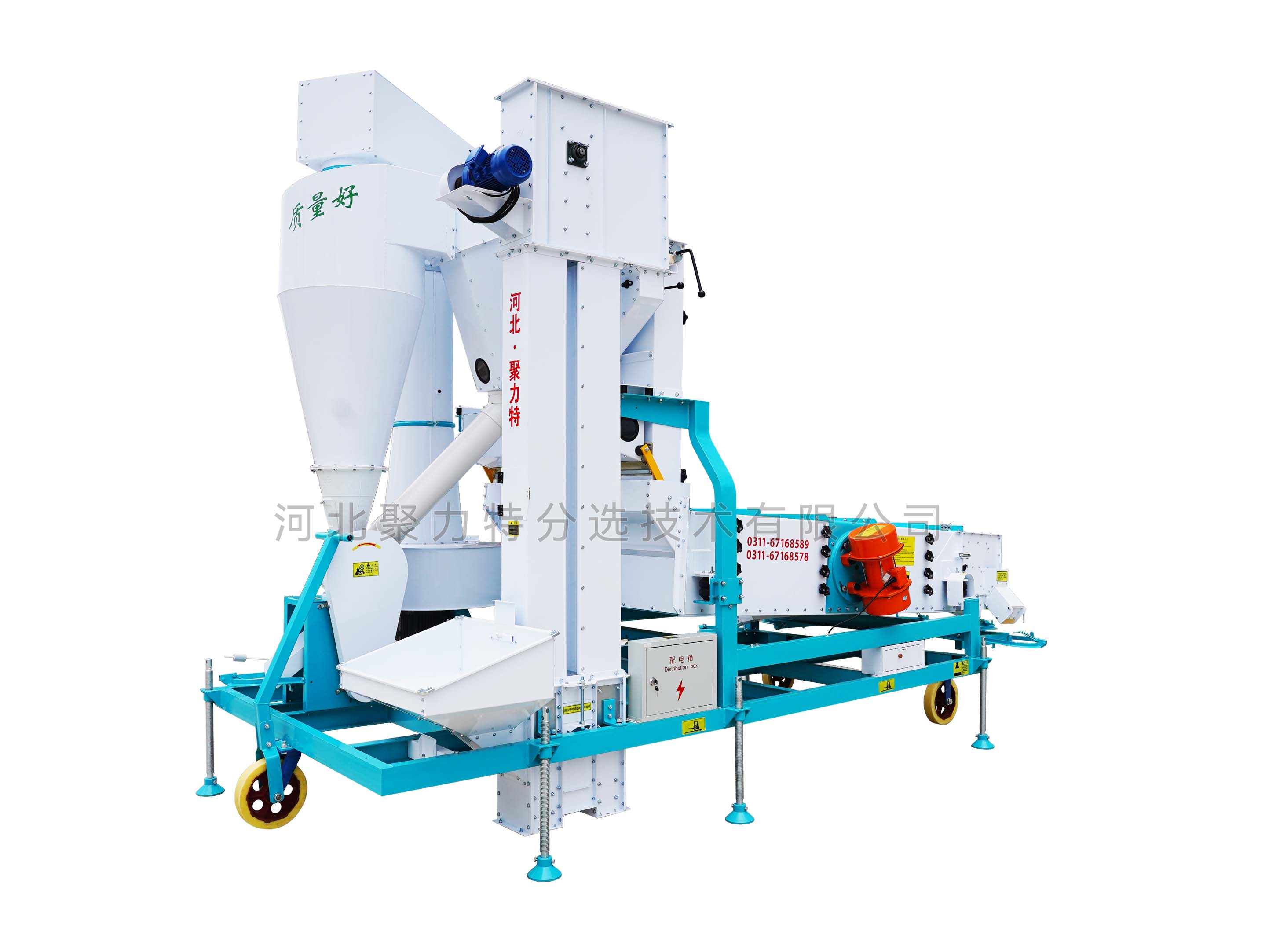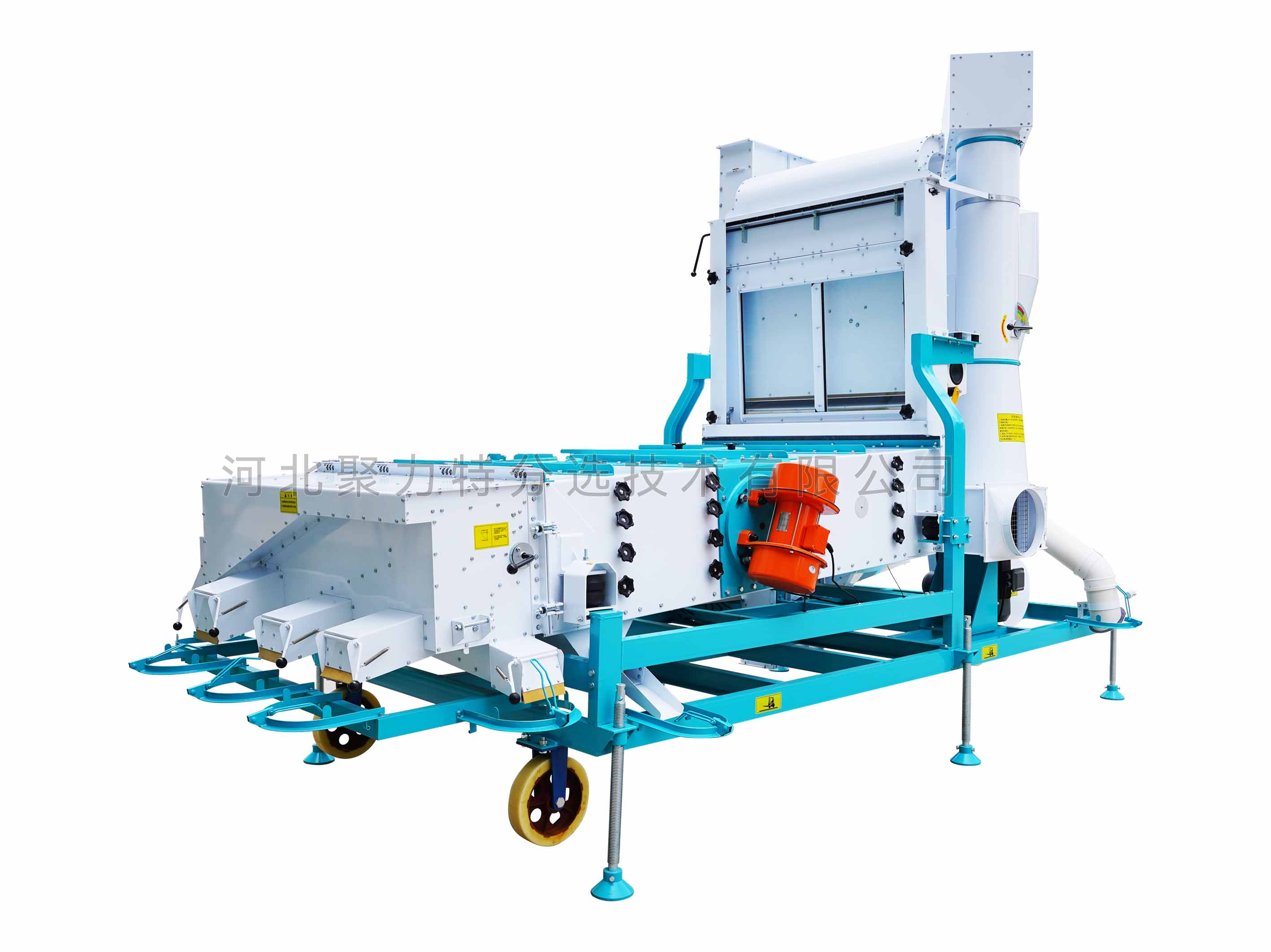 1、本機增加二次除塵,能將輕雜質(zhì)中秕粒、秸稈和粉塵糠殼分離開;